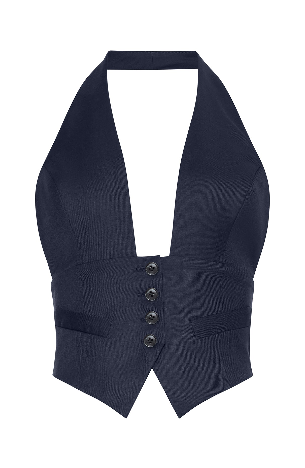 Unexpectedly alluring, the Alesis Vest takes a menswear classic and updates it with a plunging halter neckline and nipped-in waist. Finished with covered buttons, it’s an effortlessly sexy staple that works just as well solo or layered under tailoring.