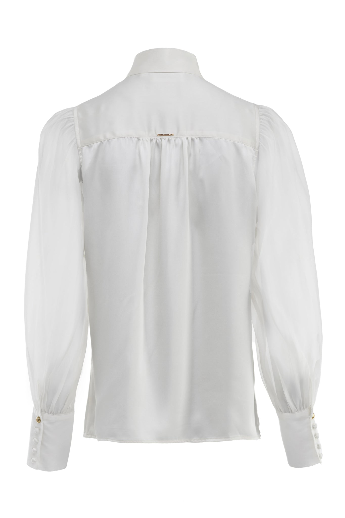 Designed with a fluid drape with a statement oversized bow collar, this blouse has been beautifully created from an elegant satin fabric. Curated to be fitted on the shoulders with a looser fit through the body, the extended cuffs enhance the feminine silhouette of this piece. Detailed with our iconic gold hardware & HC branding to the back yolk.