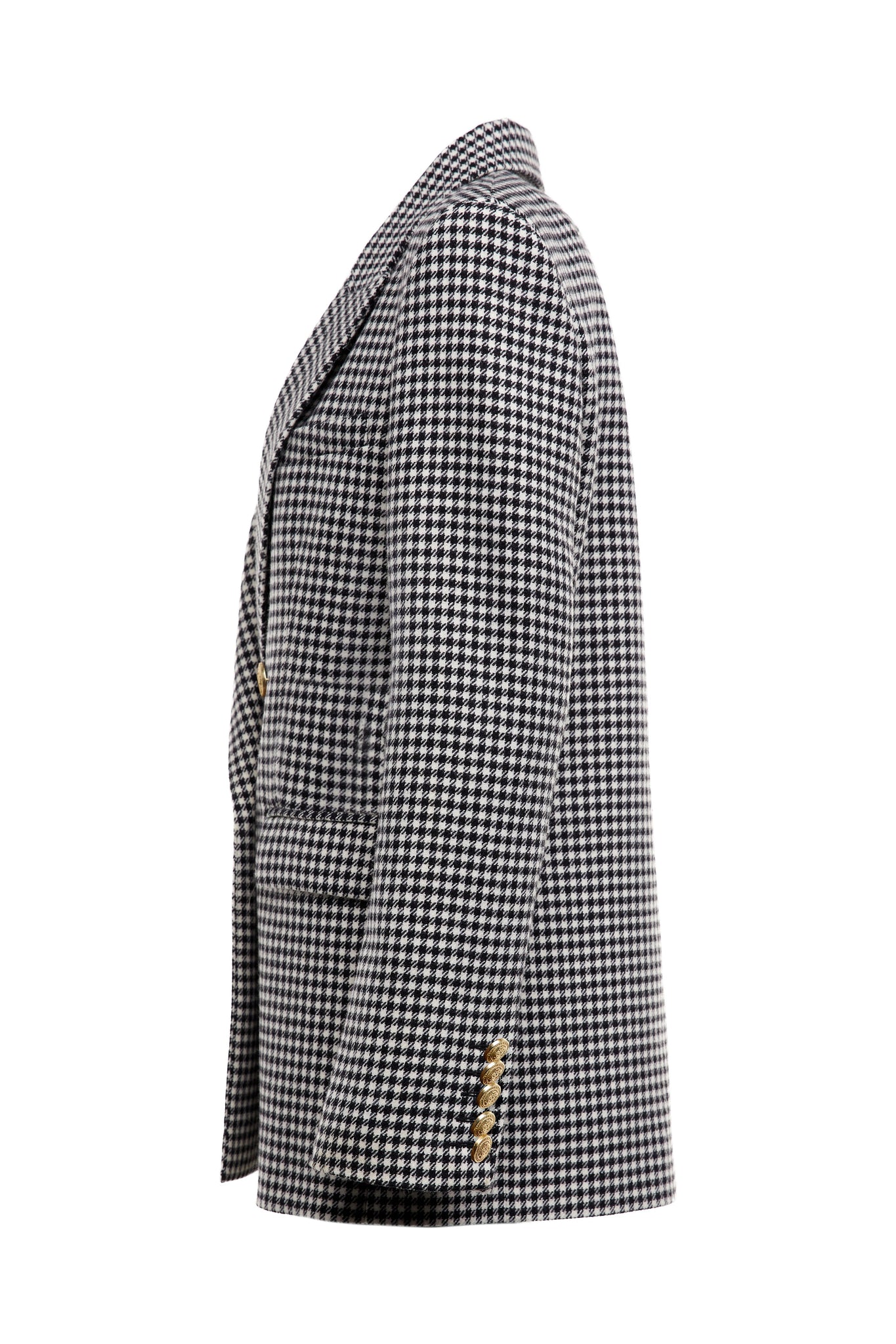 Hand-cut and made entirely in the UK, this blazer has been designed with a longline, double-breasted silhouette. Elegantly crafted to create a sharp tailored fit worn open or closed, it has peak lapels, subtle padded shoulders and is fully lined in satin for easy layering. Detailed with signature HC gold buttons on the front and cuffs.
