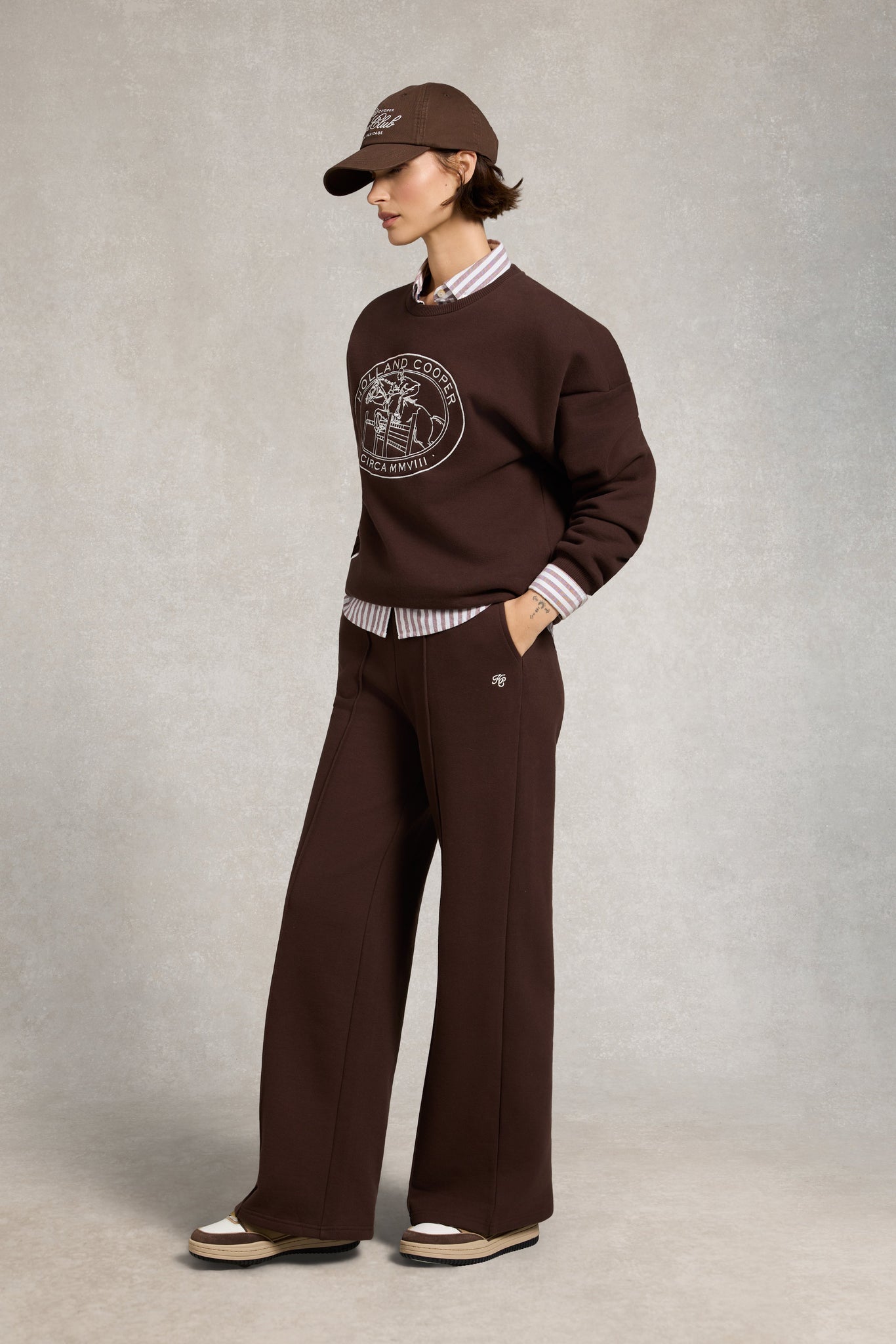 Combining laid-back comfort with a refined finish, the Collegiate Jogger is designed in a soft, luxurious fabric that feels as good as it looks. The wide-leg silhouette adds a modern edge, while the elasticated waistband and discreet side seam pockets ensure everyday ease. Finished with high-build embroidery at the hip, this piece is perfect when paired with the matching Relaxed Fit Crew Neck Sweat for a coordinated off-duty look.