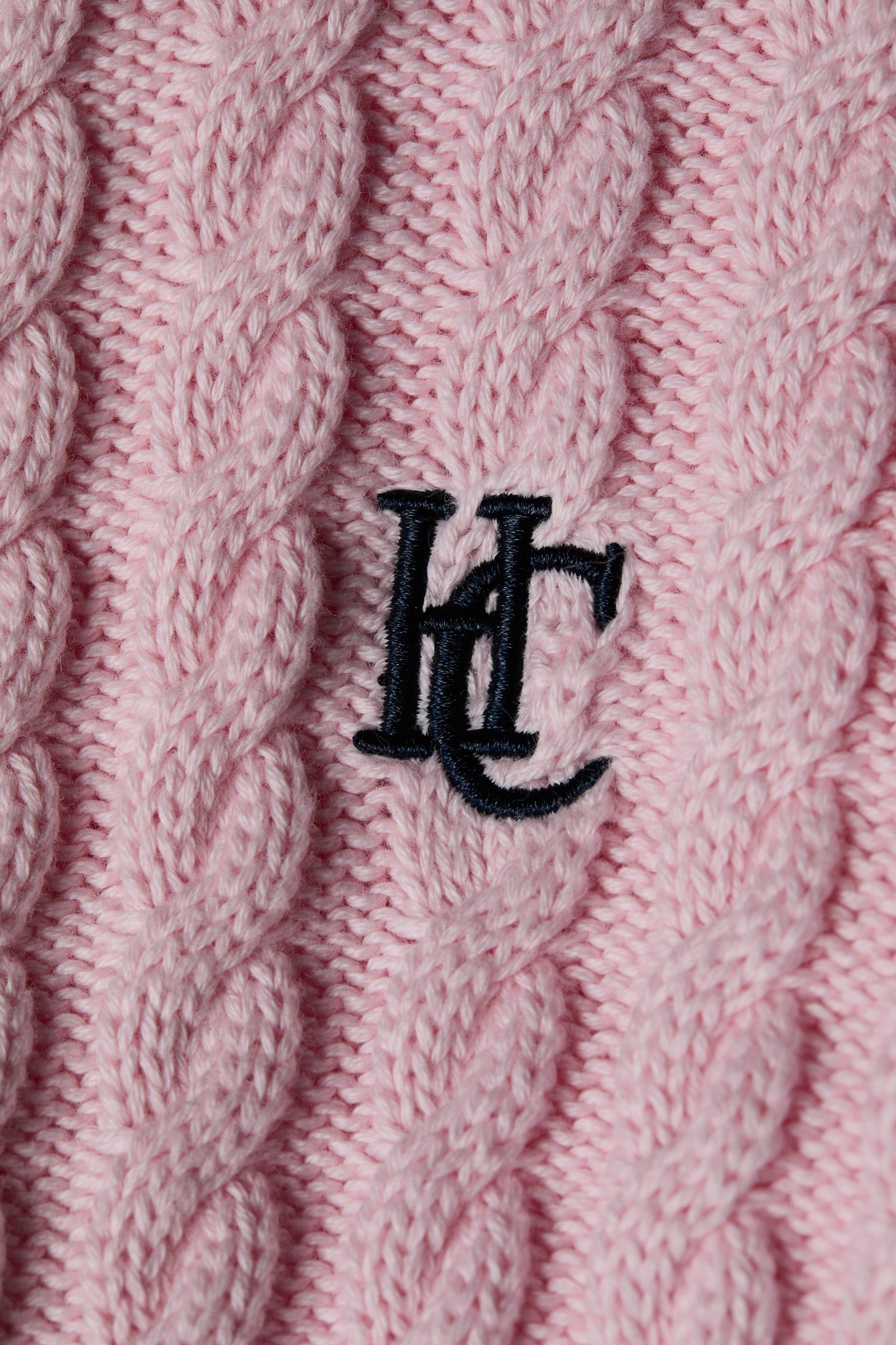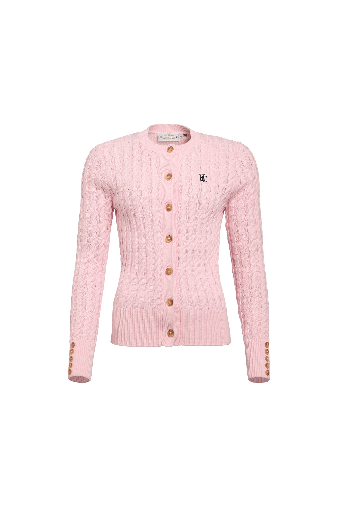 Crafted from the softest cotton, this cardigan features an elegant cable pattern on both the body and sleeves, adding a touch of sophistication to your wardrobe. Embellished with the iconic HC embroidery on the chest and horn button detailing, every element of this cardigan is carefully curated for a timeless and