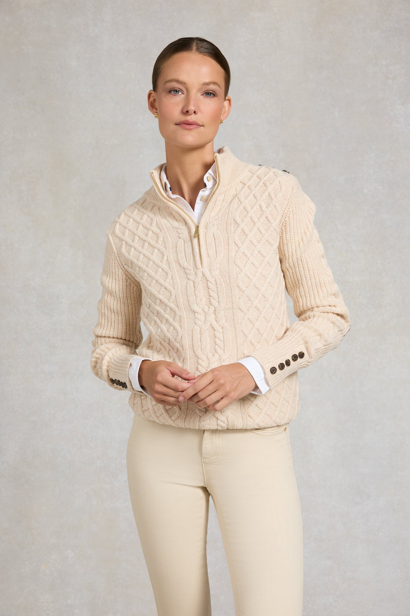 Country Cable Quarter Zip Knit (Oat)