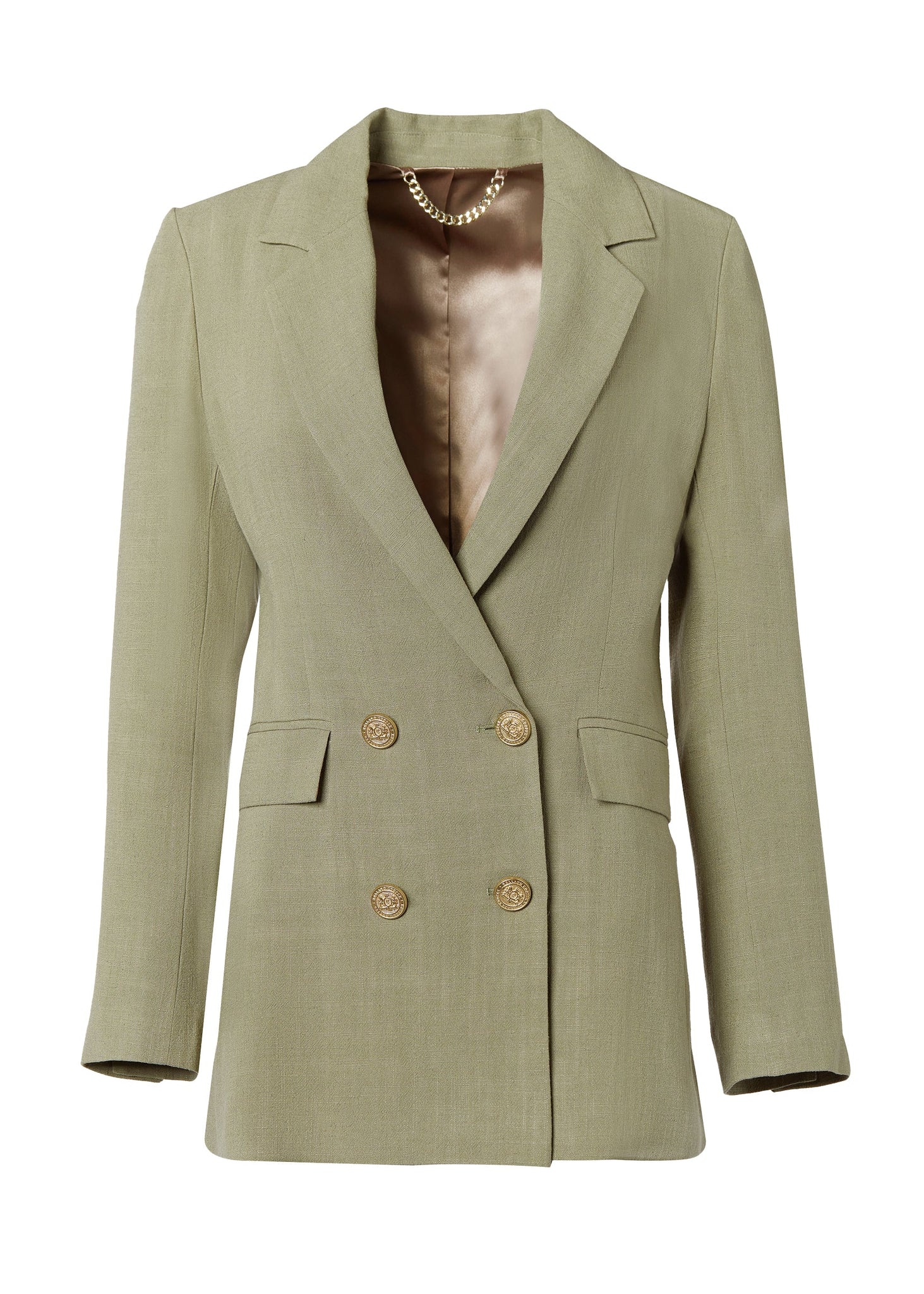 Designed to create a sharp tailored silhouette worn open or closed, the Double Breasted Linen Blazer has been handmade in the UK. Fully lined with a luxury stretch lining for extra comfort and adorned with HC signature gold hardware to the front and cuffs, this piece is a must have for your spring wardrobe.