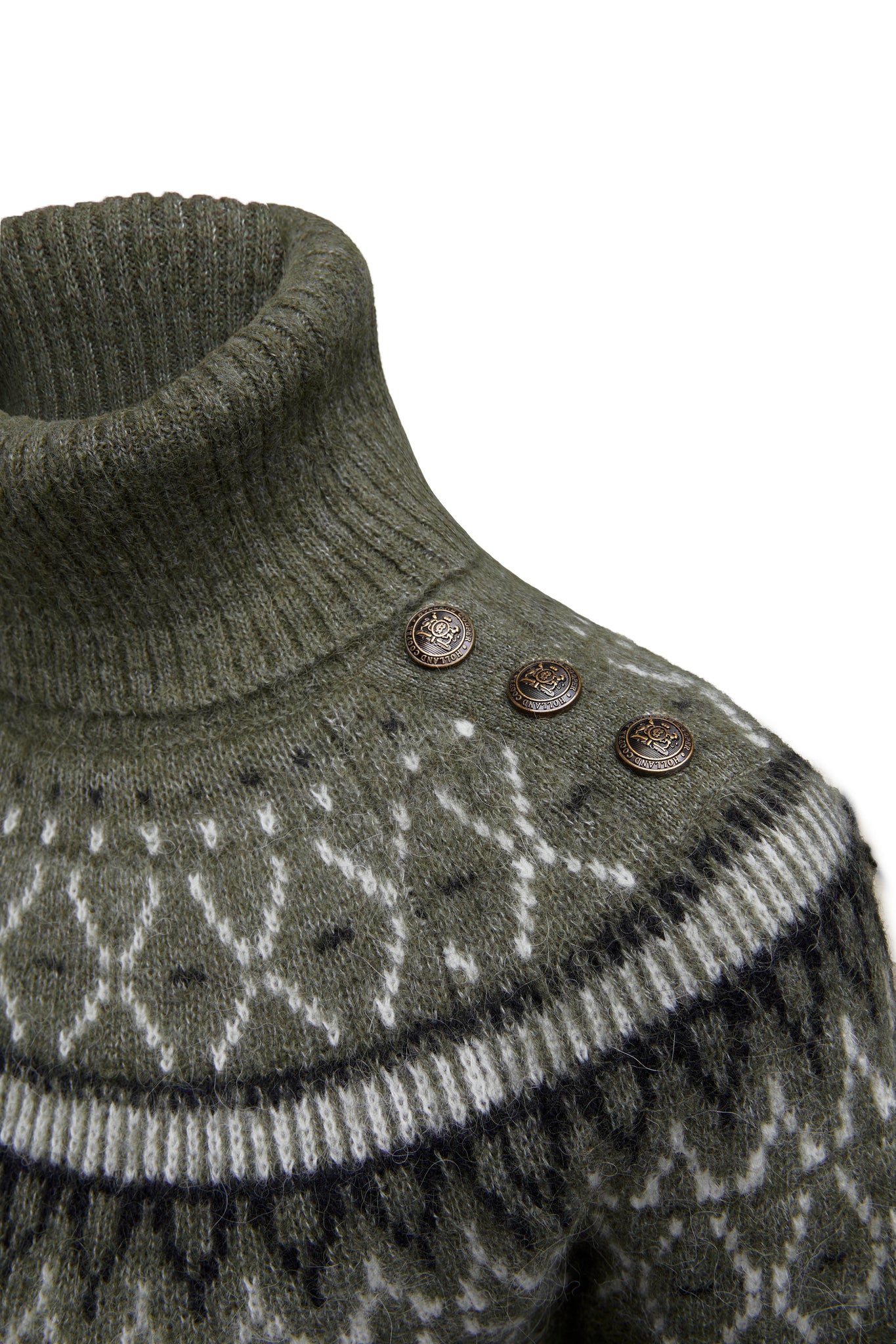Created with a classic fairisle design that stretches across the shoulders, this knit has been designed with a relaxed fit. Made from a super soft and lightweight yarn with a cosy roll neck and ribbed cuffs. Detailed with our iconic HC branding.