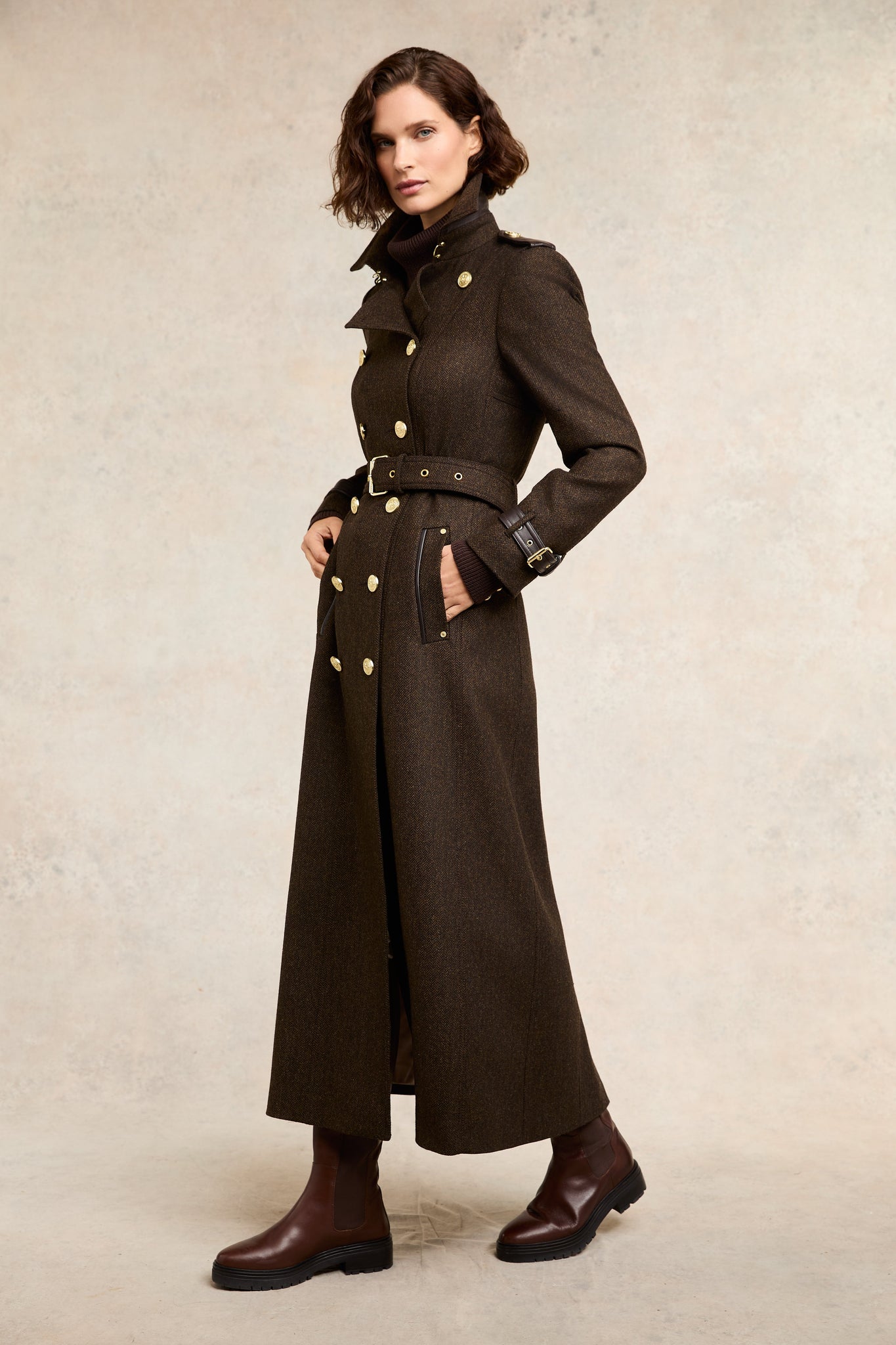 Full Length Marlborough Trench Coat (Chocolate Herringbone)