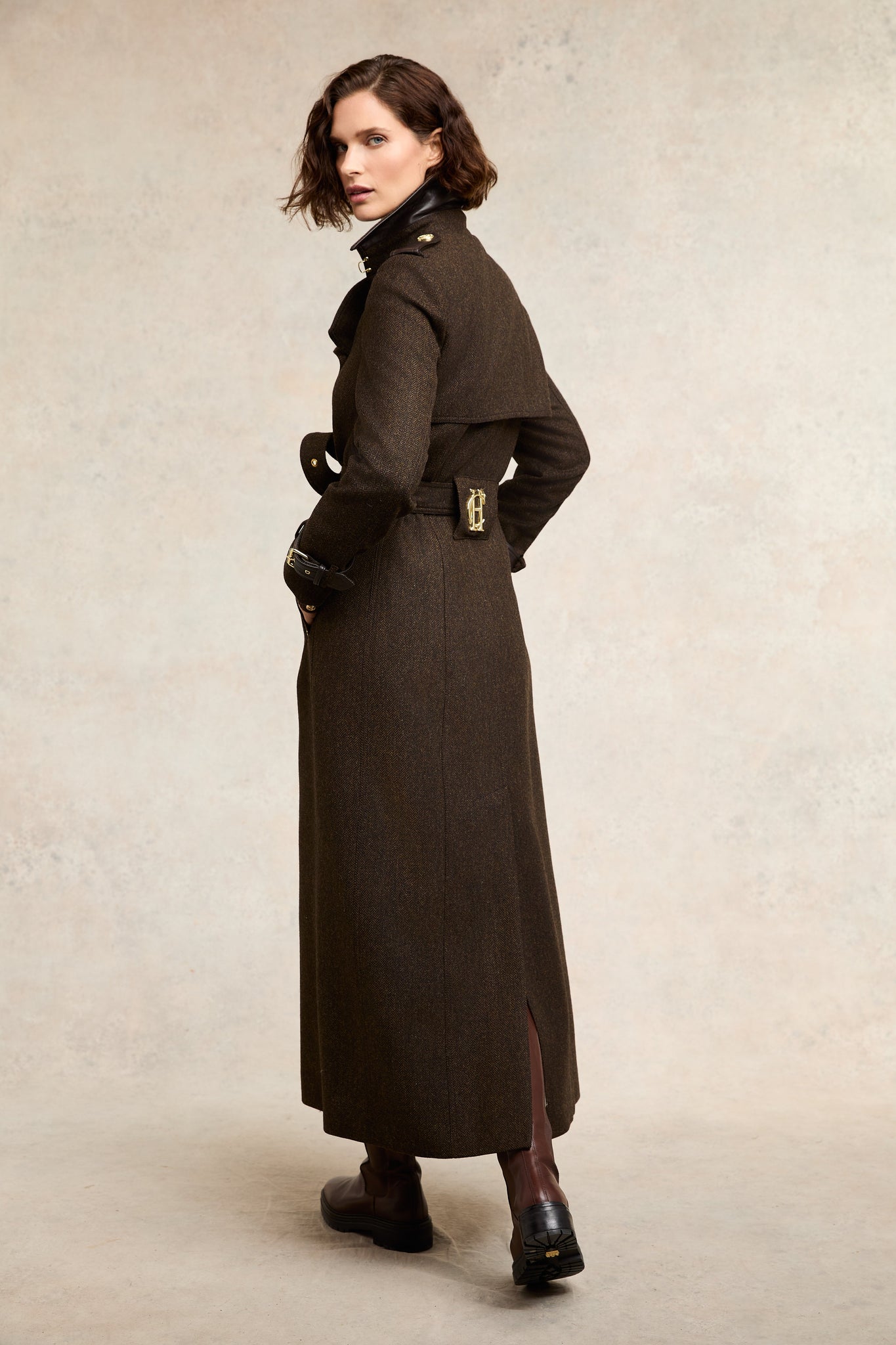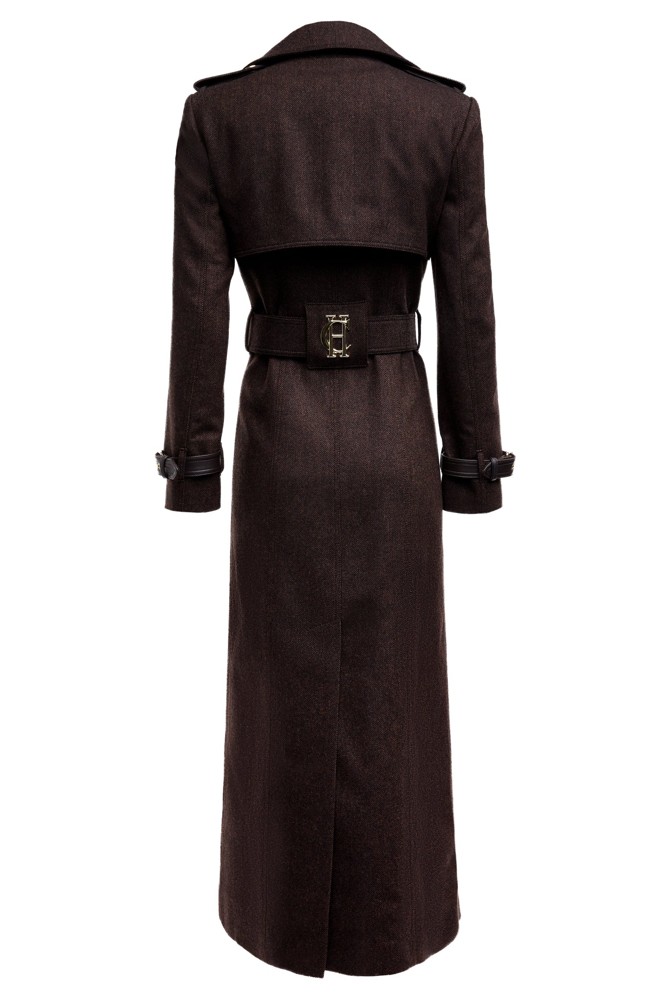 Combining classic tailoring with our exciting heritage, our iconic Full Length Marlborough Trench Coat has been handmade in the UK with the utmost care and attention. Tailored for a slim fit with a longline silhouette, its double breasted-front and belted waist adds to the flattering definition that stands at the forefront of its design. Beautifully elevated with statement lapels, military-inspired epaulettes and HC's iconic hardware. For a bold statement, wear open to allow for a fluid drape and movement.
