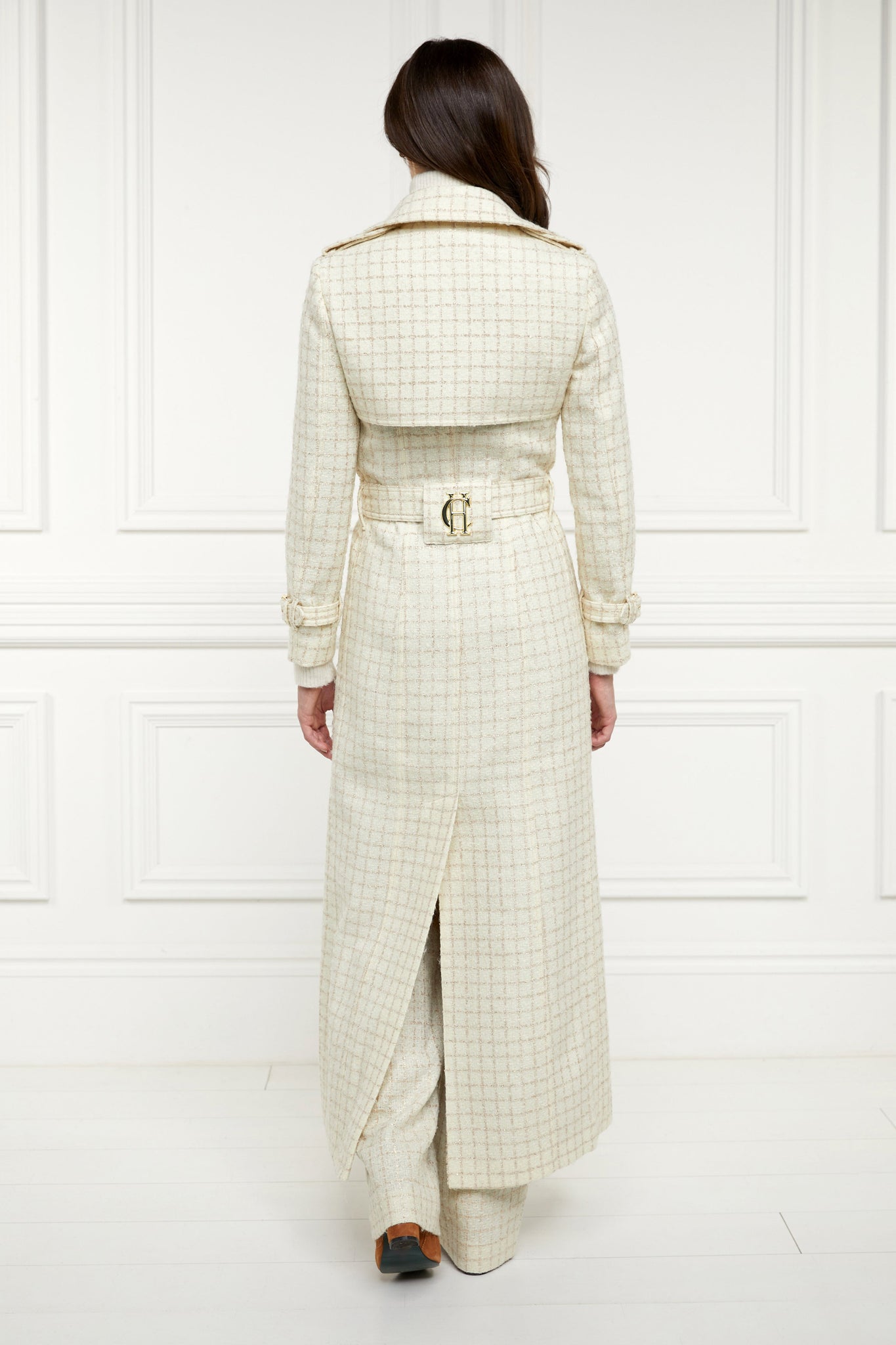 Combining classic tailoring with our exciting heritage, our iconic Full Length Marlborough Trench Coat has been handmade in the UK with the utmost care and attention. Tailored for a slim fit with a longline silhouette, its double breasted-front and belted waist adds to the flattering definition that stands at the forefront of its design. Beautifully elevated with statement lapels, military-inspired epaulettes and HC's iconic hardware.