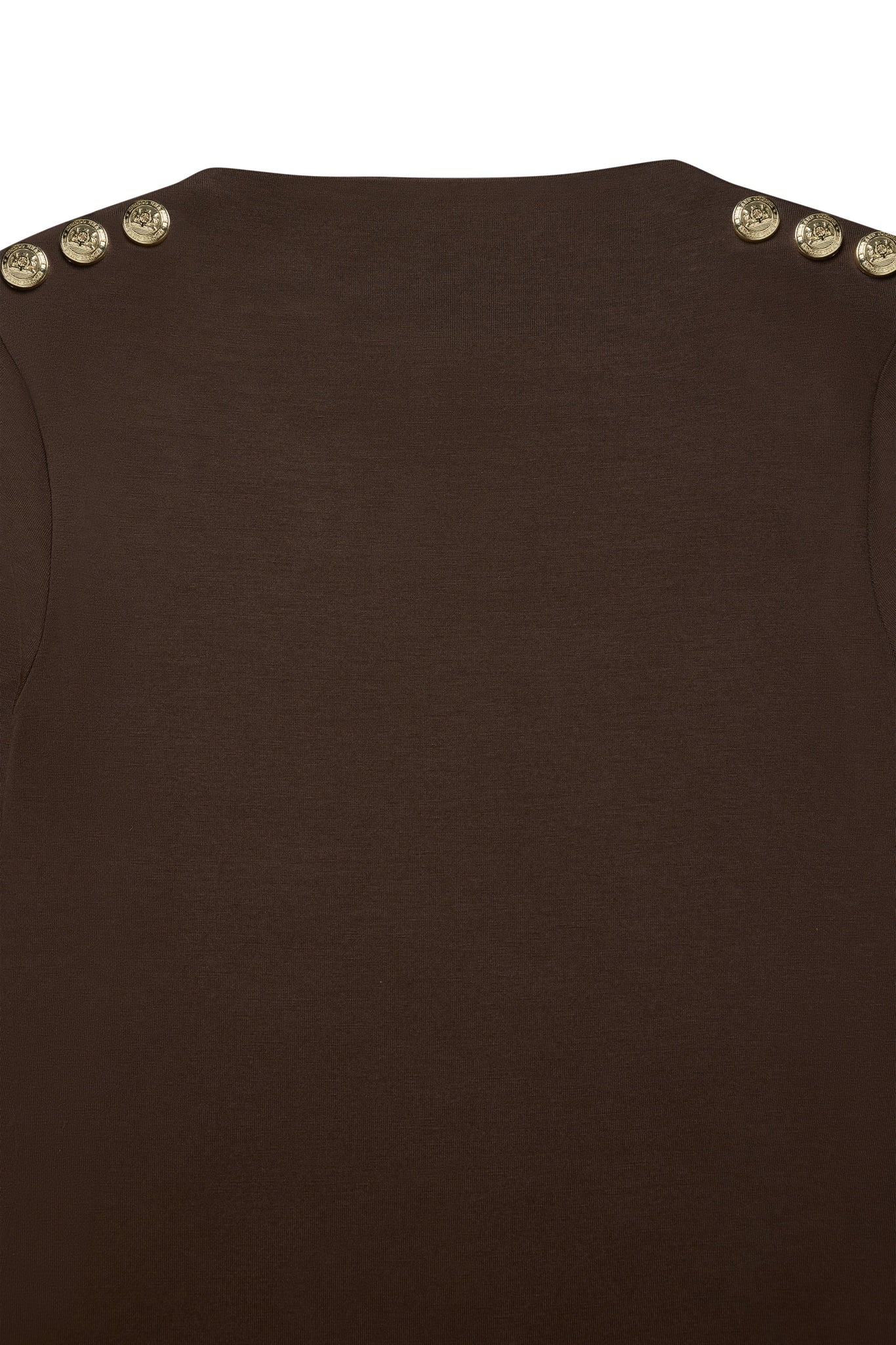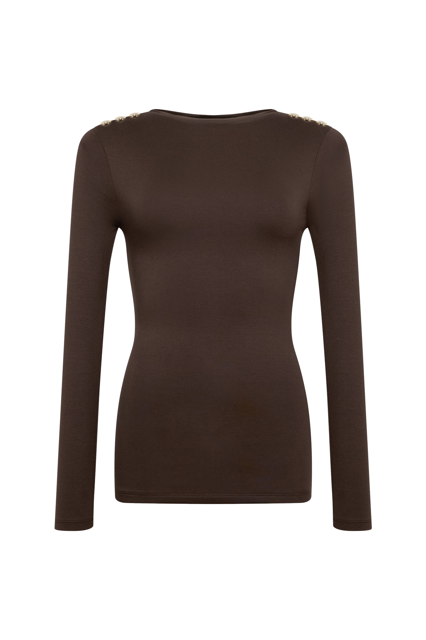 Exuding effortless sophistication, the Harper Long Sleeve Top in natural combines luxurious comfort with refined detailing. This double-layered piece offers elegant draping and exceptional wearability. Distinguished by signature crested rivets at the shoulders, it's an elevated essential that seamlessly transitions from day to evening.