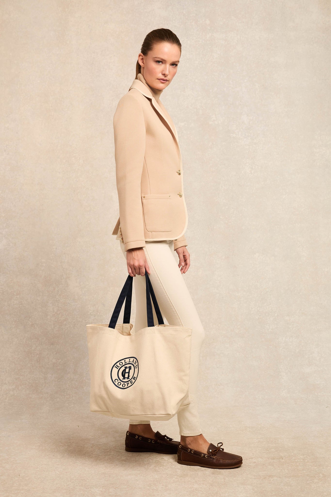 Designed with a tailored silhouette, the Henley Blazer has been designed with an elegantly slim fit and vintage-inspired aesthetic. Created from a heavyweight knitted shell fabric, this blazer has been beautifully characterised by our iconic handmade HC badge on the chest pocket. With an elegant two-button closure, the traditional piping adds a preppy and chic touch. Detailed with patch pockets and buttoned cuffs.