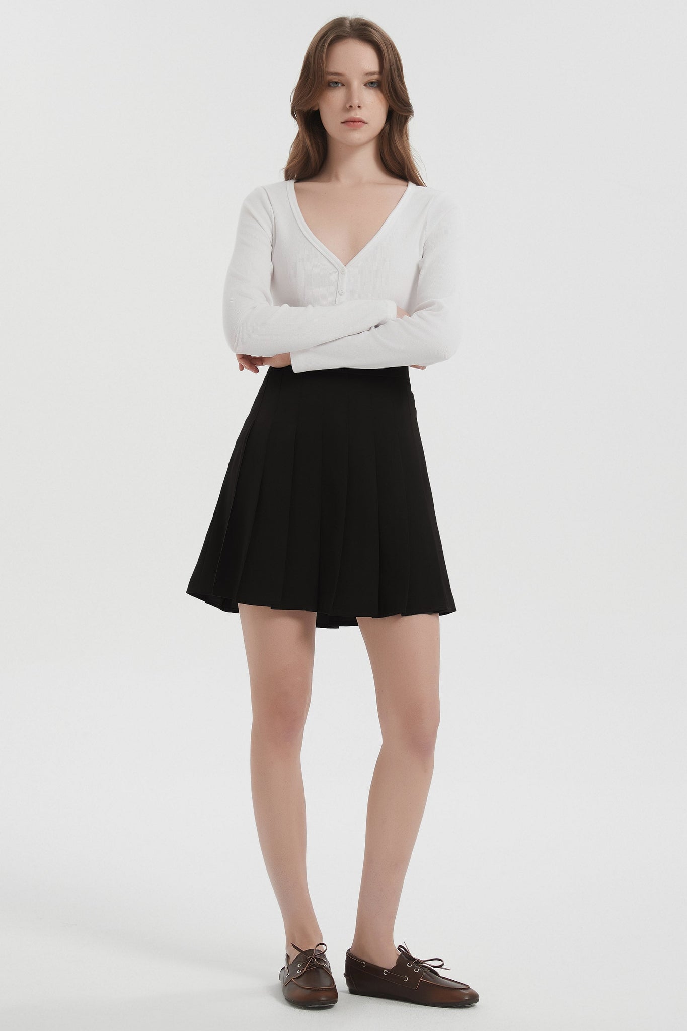 • Flattering Design: High-waisted pleats create an elegant A-line silhouette, complemented by a discreet left-side zipper for a seamless look in pleated skirts for women.