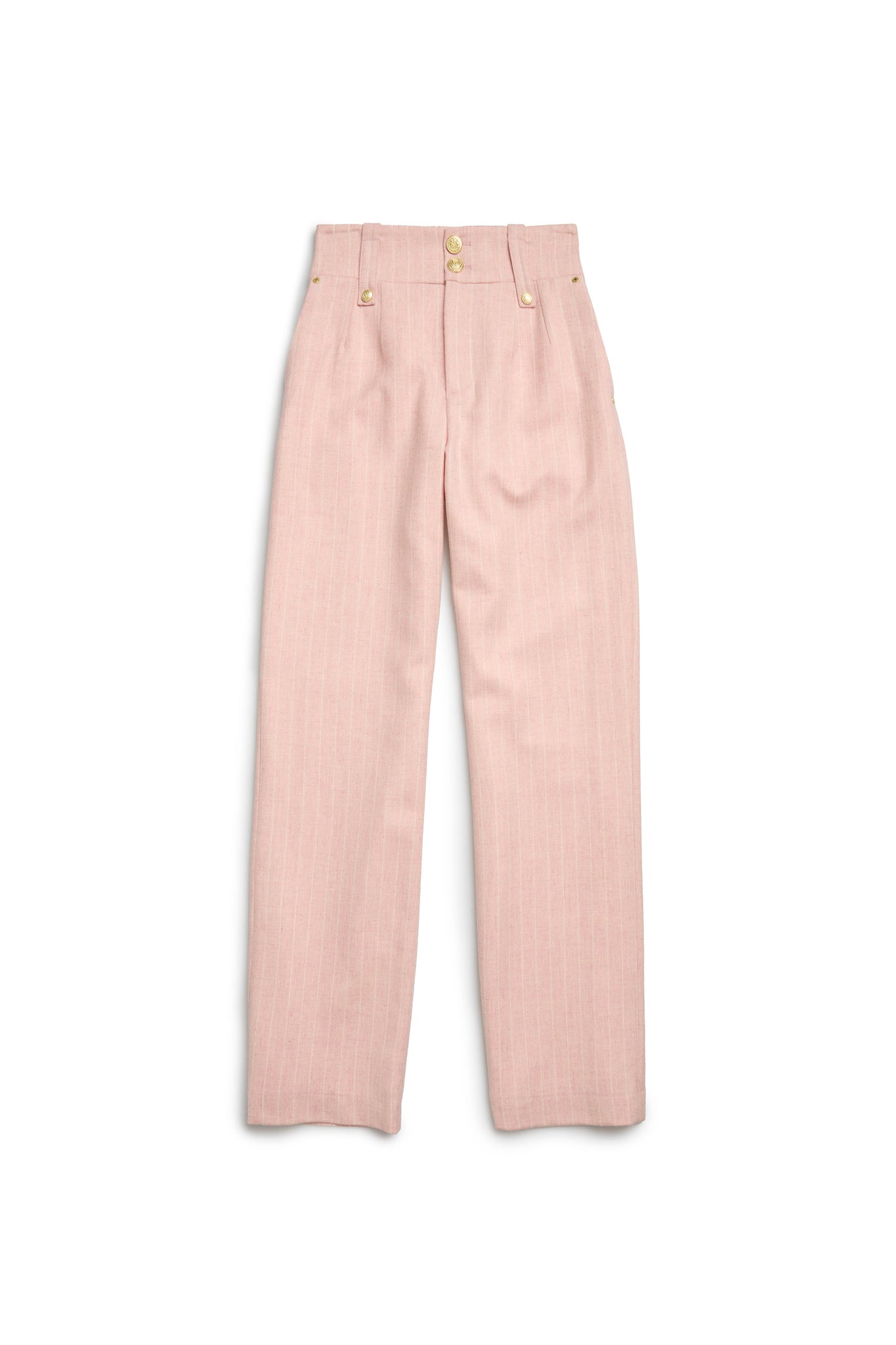 High Waisted Straight Trouser (Pink Chalk Pinstripe)