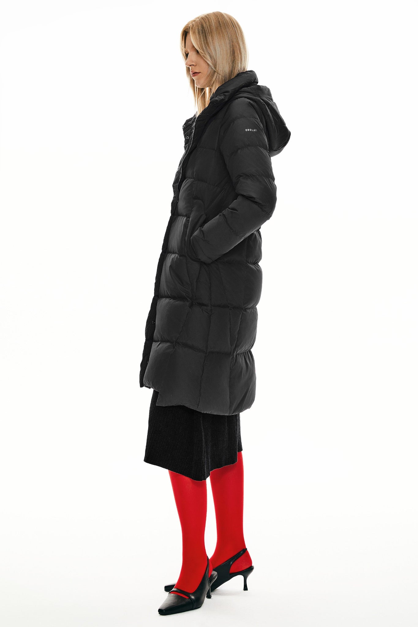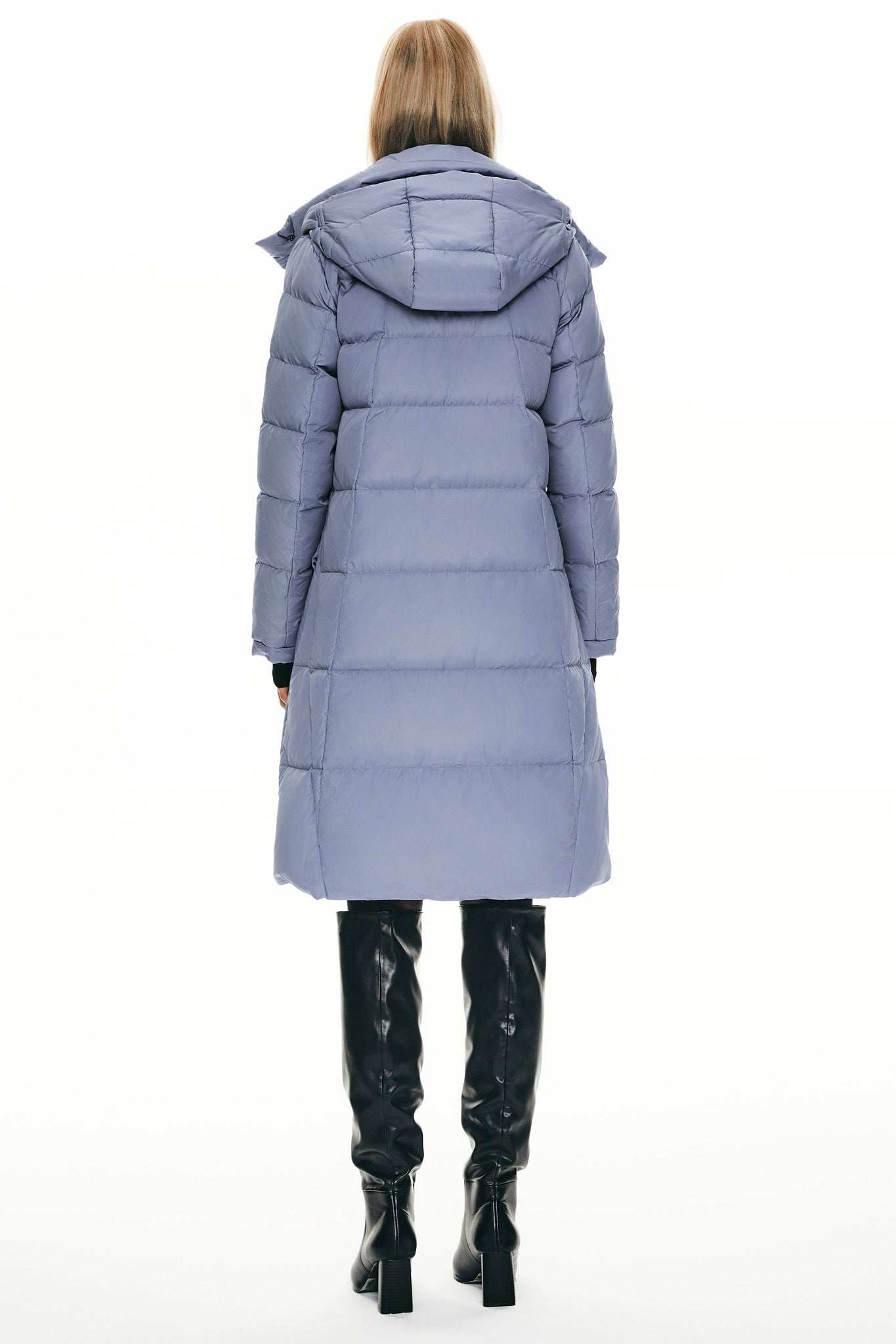 Long hooded puffer coat with a two-way zipper and snap placket, and 2 side pockets with plush lines can make your hands warm and keep a lot of stuff. High neckline, high-density water-resistant, and windproof material let you no longer be afraid of going out at low temperatures. Spacious linear type design with solid color makes it perfect for casual occasions and plenty of outdoor exercises.