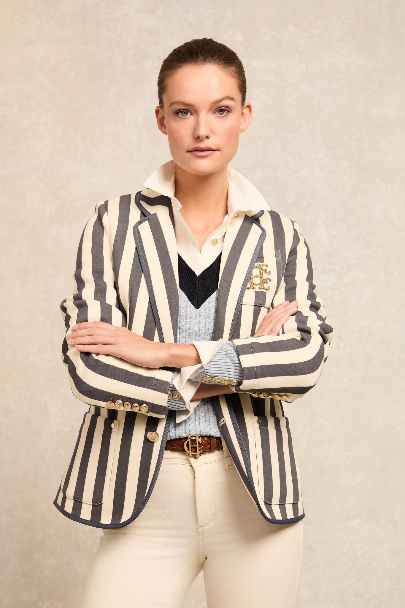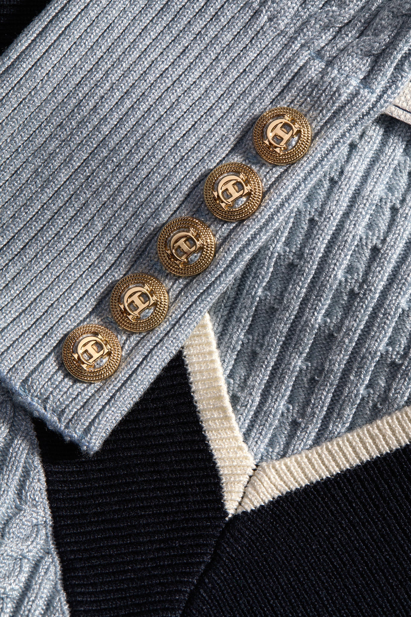 This exquisitely crafted piece features a delicate contrast rib design and intricate cabling throughout the body, offering a touch of classic sophistication. Adorned with the signature HC embroidery on the chest, this slim-fit knit is woven from a luxurious blend, ensuring both softness and durability. Perfect for layering or as a standalone statement piece.