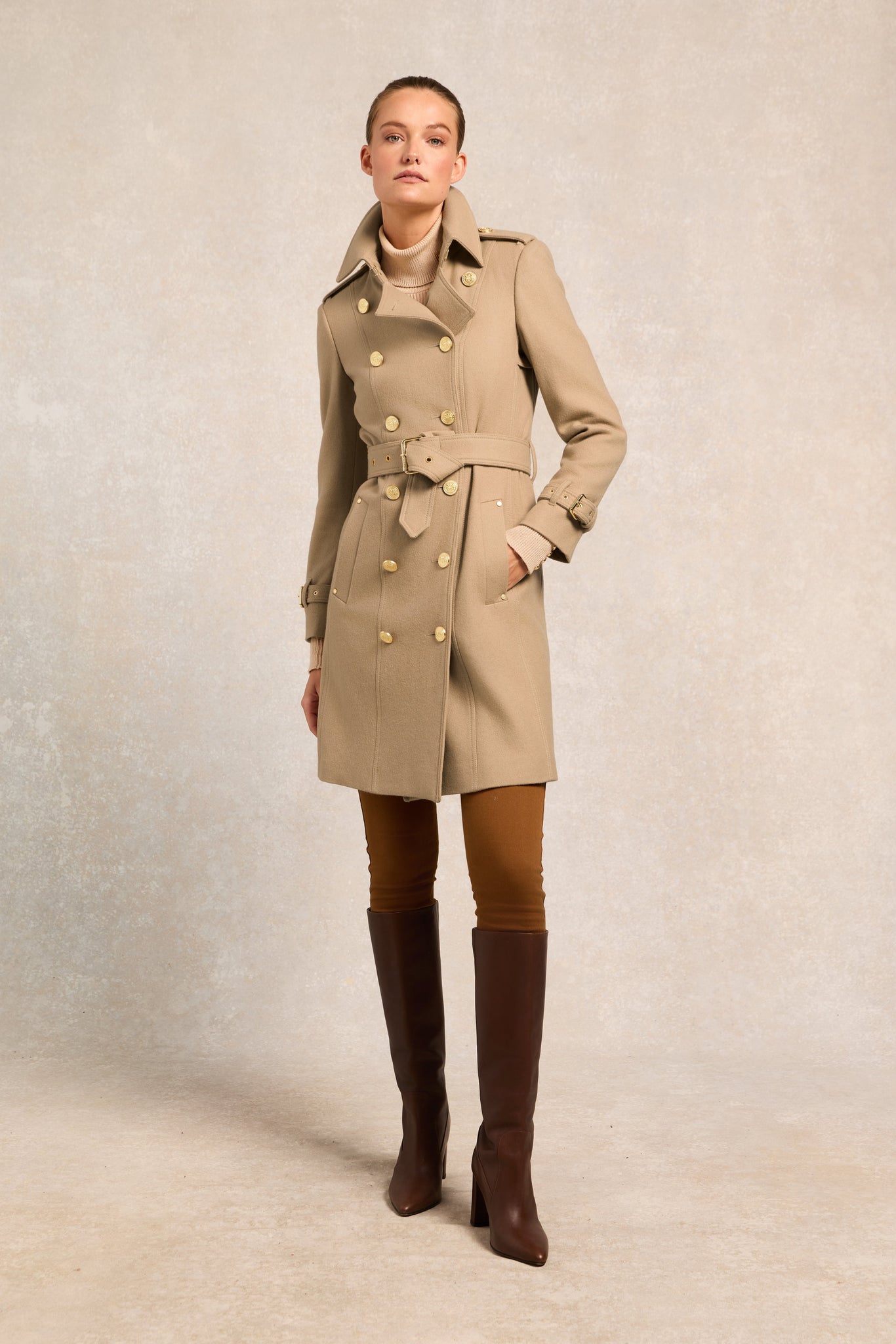 Classic and timeless, this elegant fitted trench coat is a wardrobe staple and a lifetime investment.
