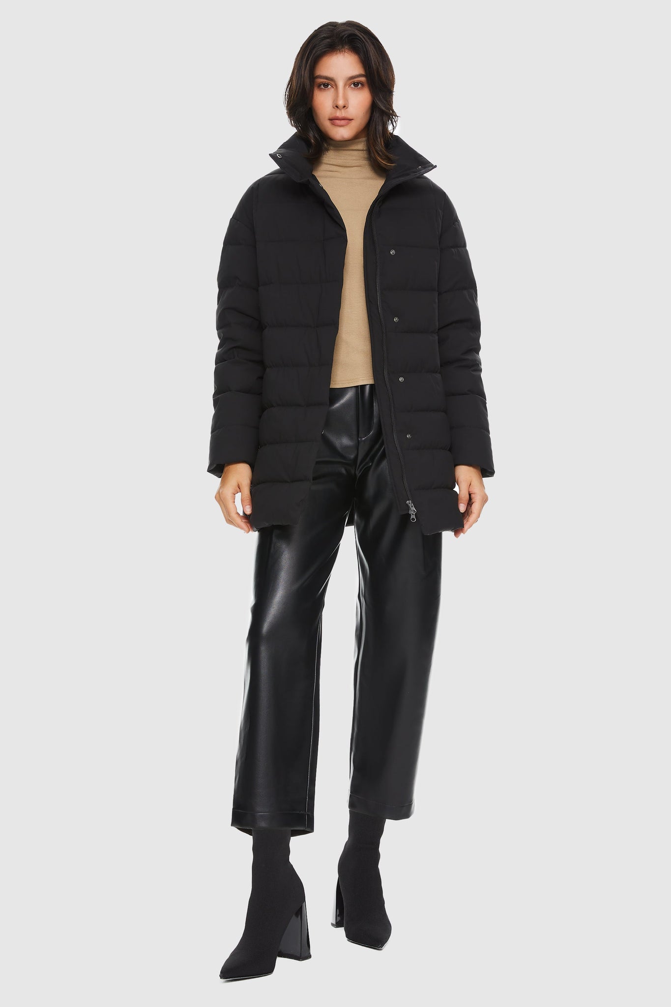 This quilted jacket features a flattering H-slim fit style that accentuates your figure, while the mid-length design offers warmth, windproof, and wearability. The coat's loose sleeve design allows for comfortable shoulder movement. The zip and snap double placket design on this coat provides extra insulation and protection from the wind and cold. Multiple Convenient Pockets provide more space for your essentials. Versatile design that can be dressed up or down for any occasion.