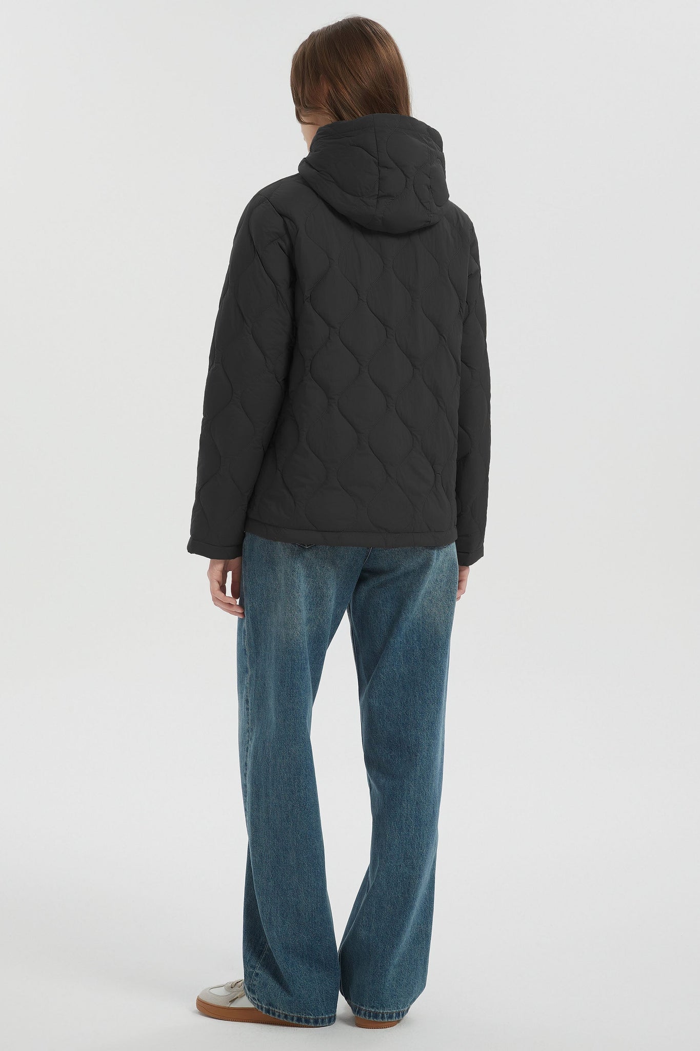 • Stylish Details: The quilted puffer jacket features a zip and snap-button closure, adding a modern touch to this classic piece.
