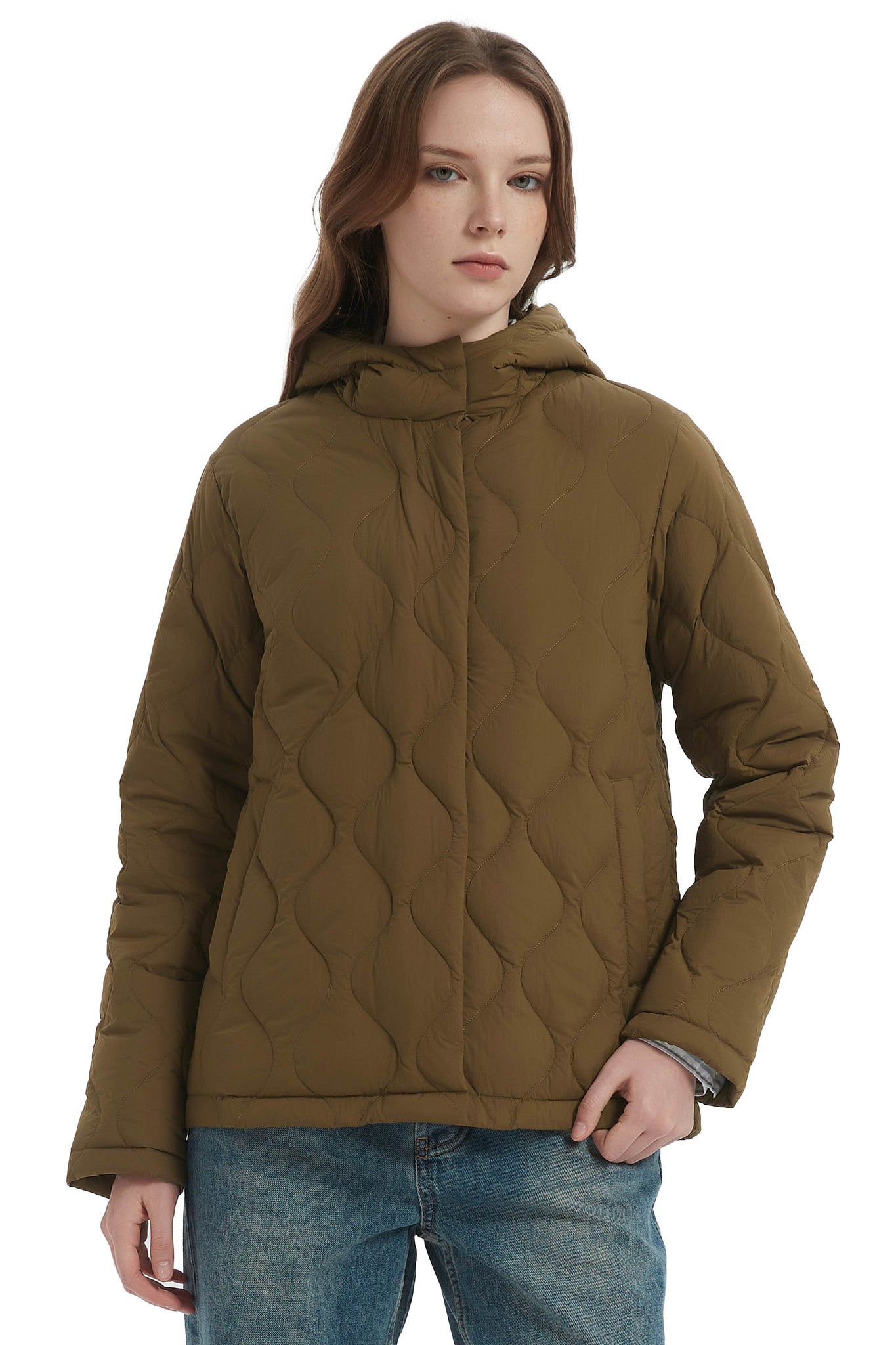 • Versatile Design: This women's lightweight down jacket features a warm stand-up collar, attached hood, and practical side pockets for a stylish and functional look.
