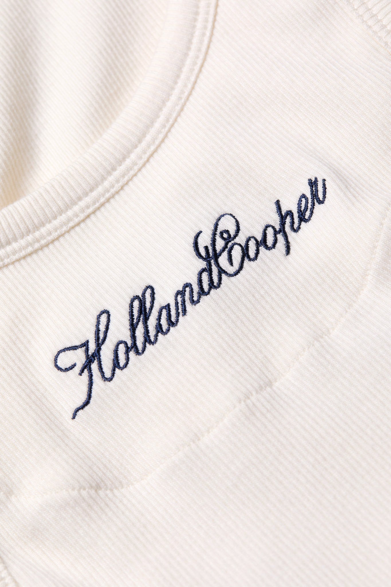 Elevate your essentials with our Rebecca Rib Tank in timeless Natural. This refined staple features our signature HC embroidery at the neckline, lending a subtle touch of luxury to its classic silhouette. Expertly tailored for a sleek, slim fit, the premium cotton-elastane blend ensures both comfort and sophistication. A versatile foundation piece that epitomises understated British elegance.