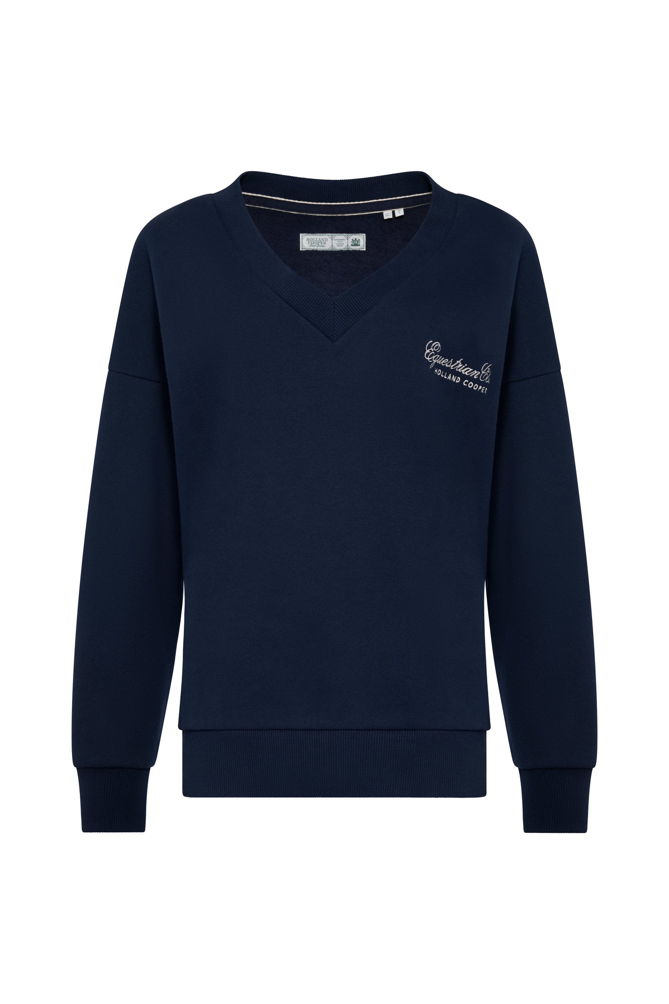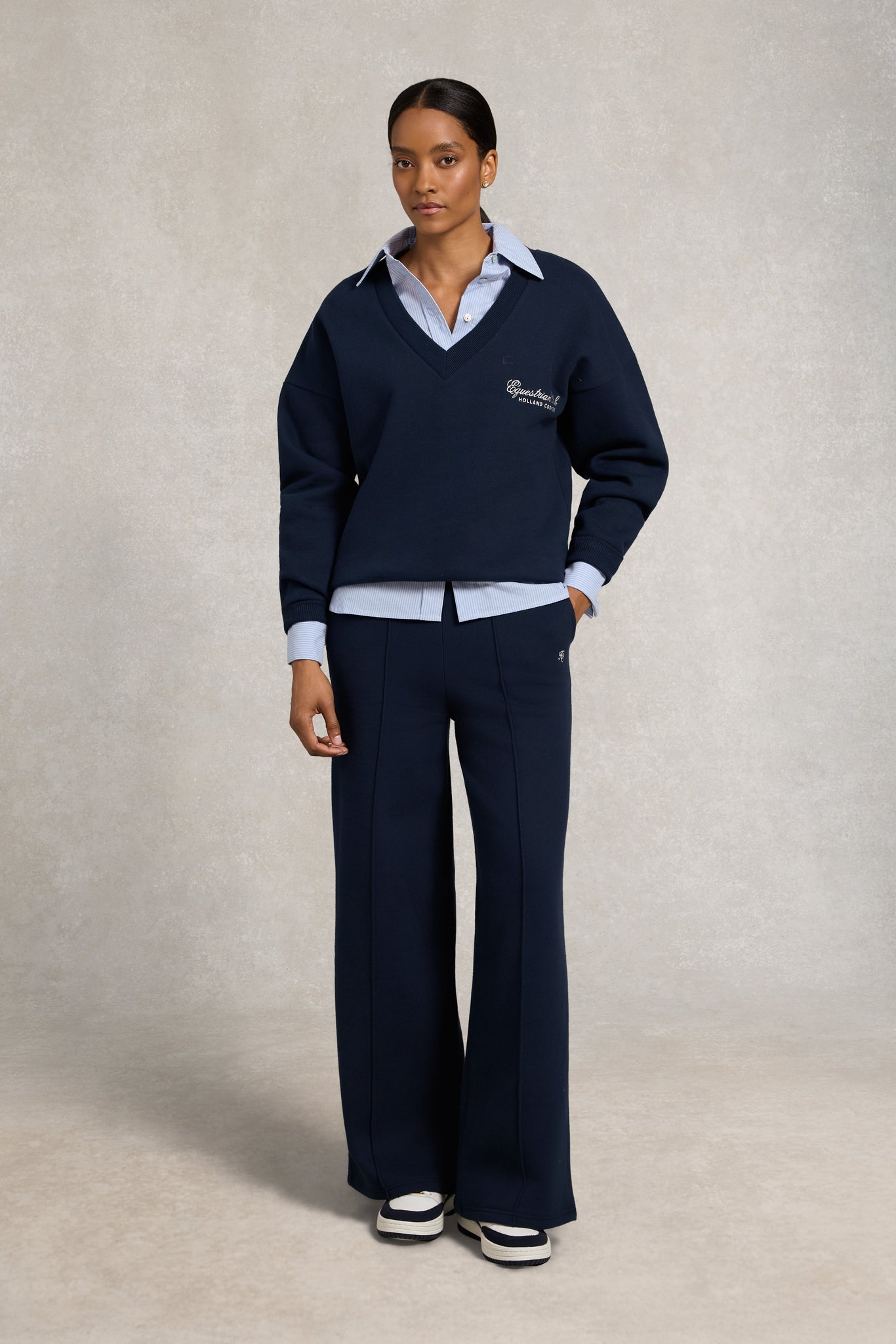 Crafted from a buttery soft cotton-poly blend, the Relaxed Script V-Neck Sweat is the ultimate throw-on-and-go layer. Designed with an oversized fit and dropped shoulder seams, it offers a laid-back silhouette with a refined edge. The deep V-neckline adds a flattering touch, while ribbed cuffs and hem provide structure and comfort. Finished with high-build embroidery to the chest, this piece blends elevated detailing with relaxed everyday wear.