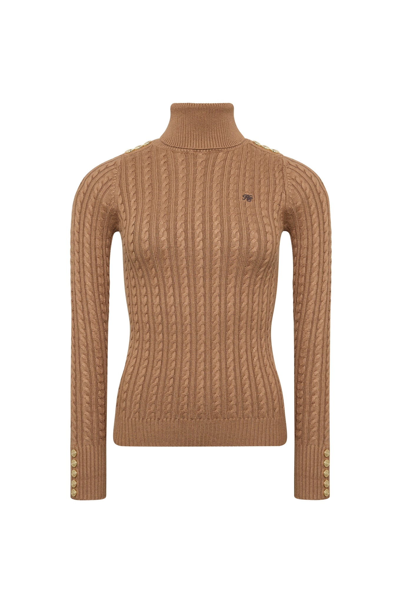 Our much-loved Portland knit has been updated to a slimmer and lighter-weight version. Designed with a slim silhouette and relaxed roll neck, this lightweight cable knit jumper has been curated from a super-soft yarn. With iconic HC hardware on both the cuff and shoulders, this knit wears perfectly tucked into our jodhpur jeans.