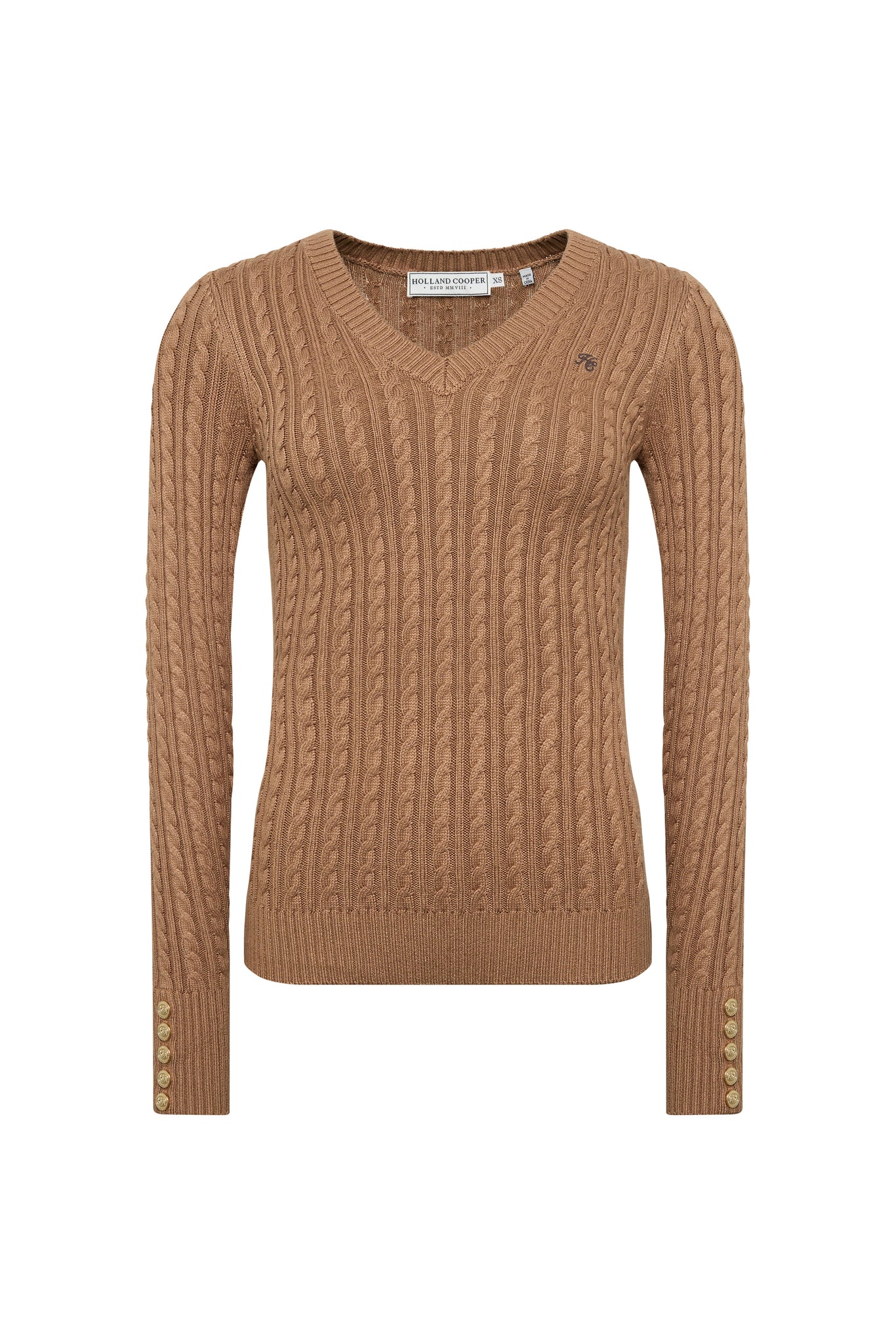 Designed with a slim fit with a classic and preppy aesthetic, this knit has been created to become an everyday essential in your wardrobe. Created with an elegant vee neckline and long sleeves, this piece is intended to sit on the hip. Detailed with our signature gold rivets on the cuffs.