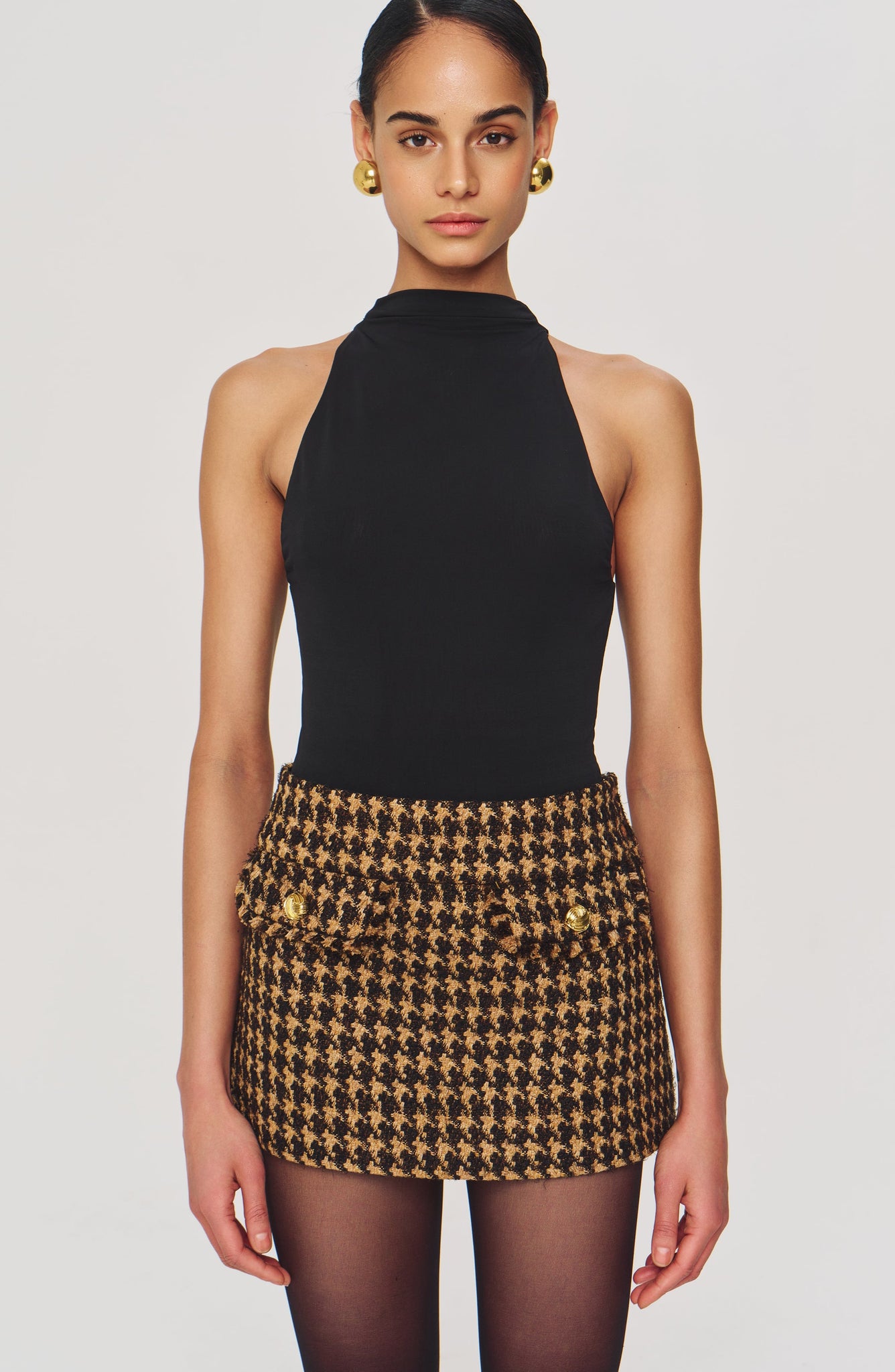 Simplicity meets seduction. The Spen Bodysuit features a high halter neckline, designed for a smooth, body-hugging fit. It’s the essential base layer for power suiting or a sleek night-out look.