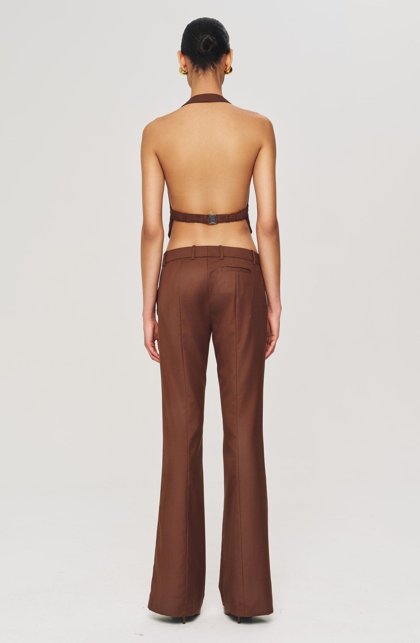 The Trevor Pant is tailored in smooth suiting fabric with a long, straight leg and a flattering high waist. Crisp yet easy to wear, it completes the set or anchors any look with polish.