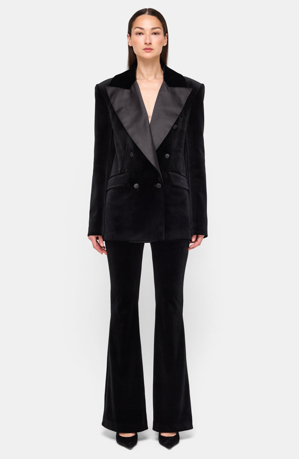 Tailored with modern ease, the Vanessa Pants are cut from plush velvet for a sleek, elongating fit. Featuring a high-rise waist, side pockets, and a subtle flare leg, they’re an elevated essential that transitions effortlessly from day to night.