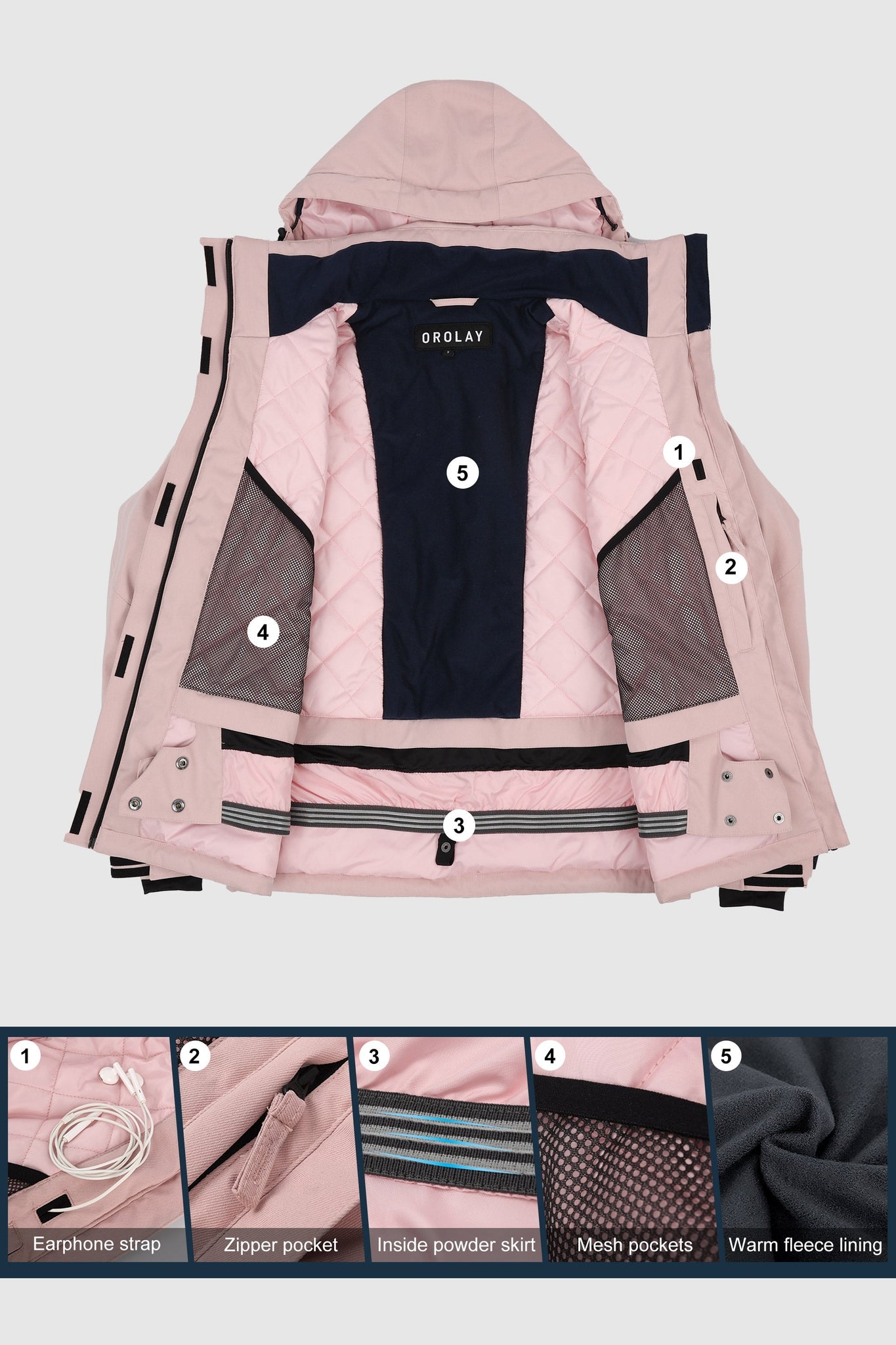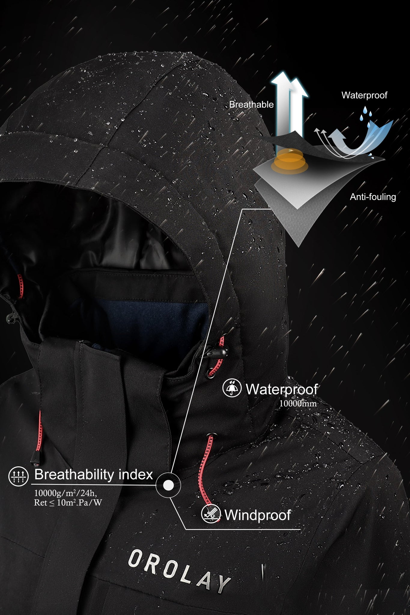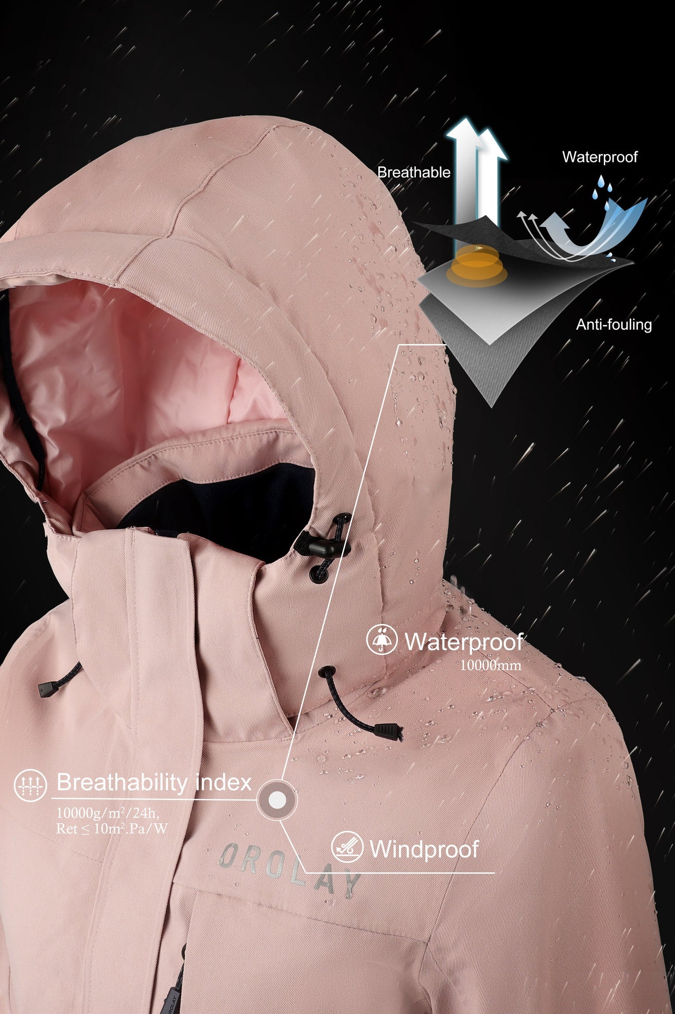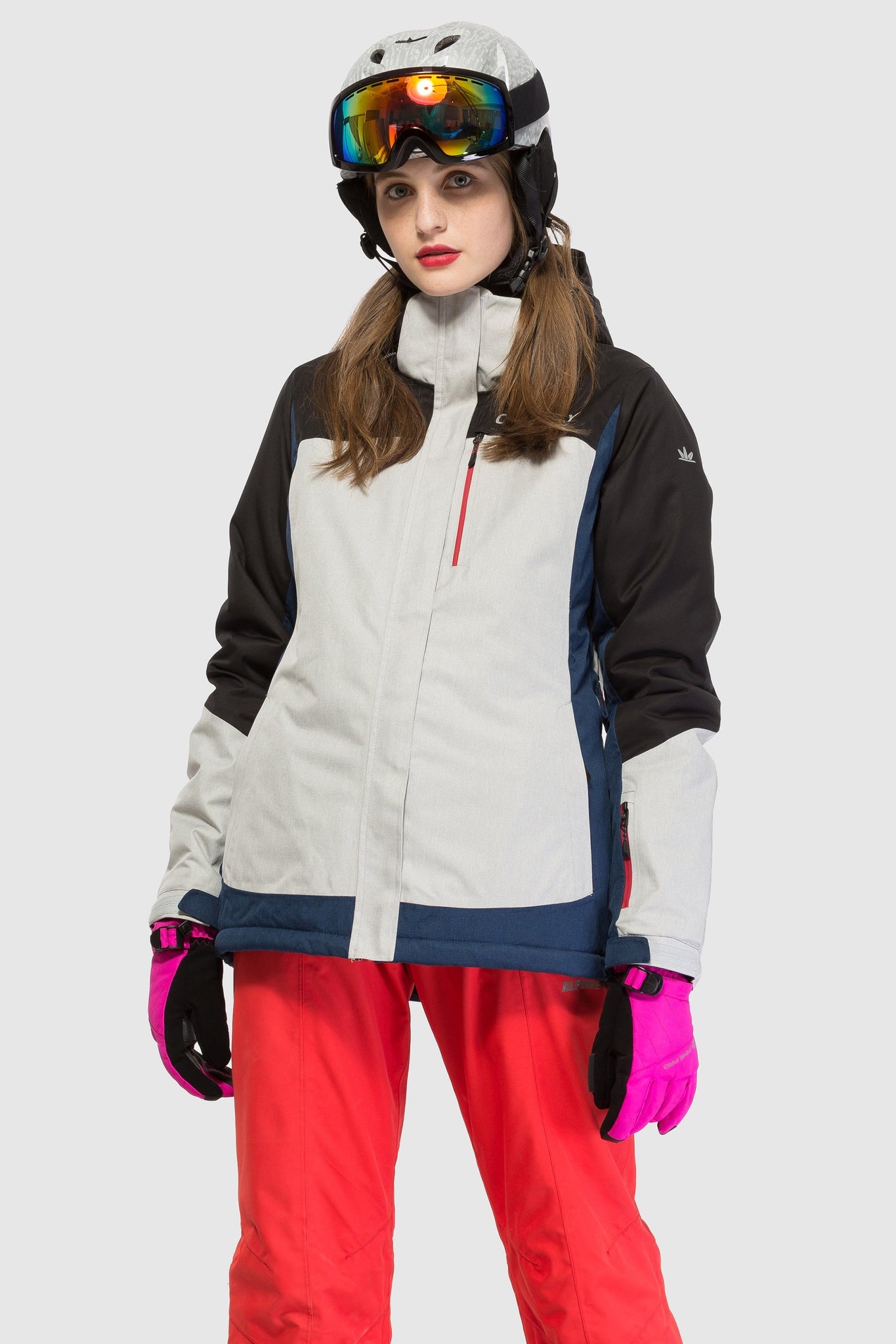 Professional water-repellent shell of the women's winter ski jacket can work under over 10000mm pressure head, made for rough freezing winter weather conditions and keeps you dry, warm and comfortable in rainy or misty weather. The stand collar jacket filling with high quality material is warm and lightweight. High-class polyester pongee fabric is more skin-friendly and soft.