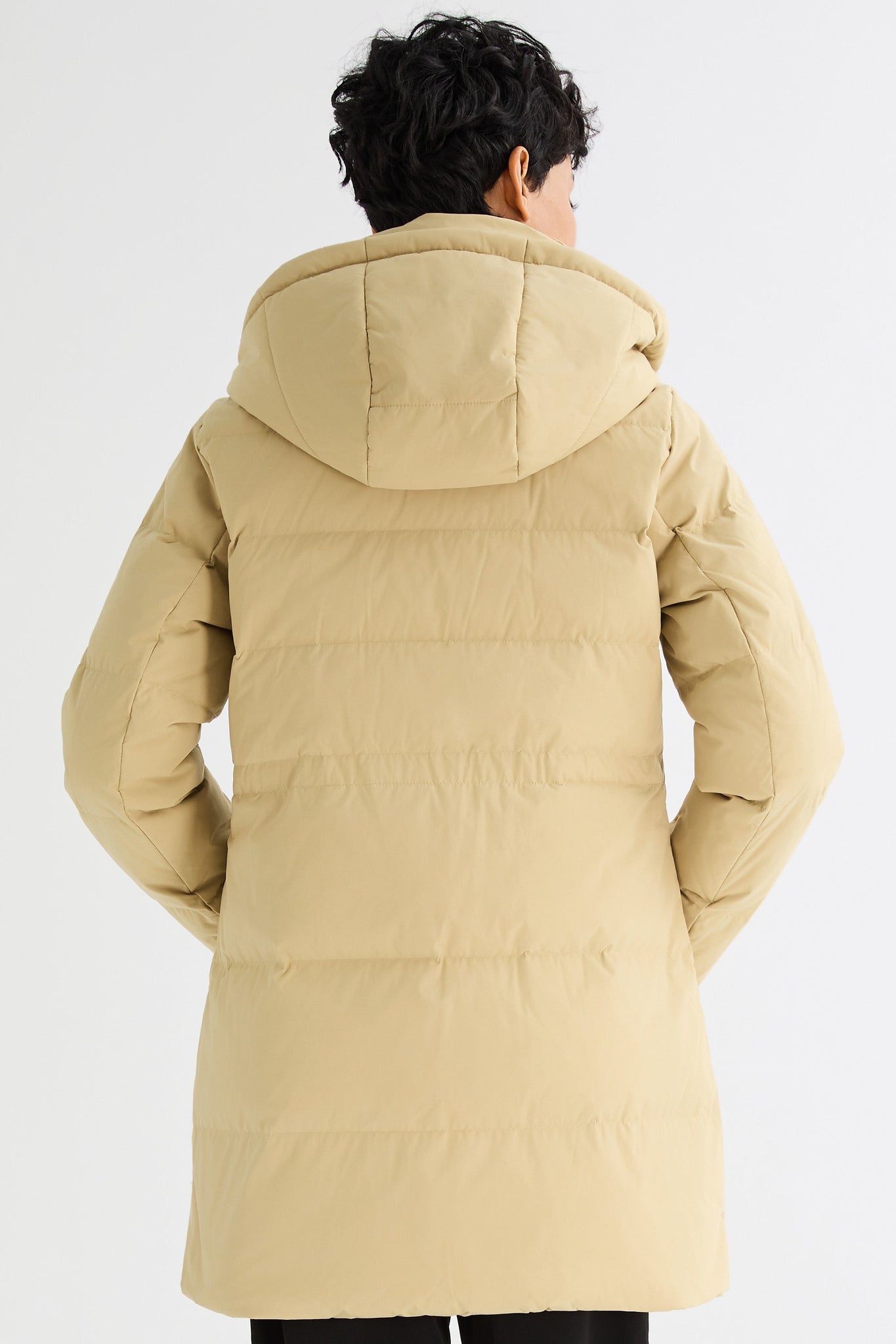 The drawcord-adjustable hood and elastic drawcord at the waist allow for a personalized fit, adapting to different weather conditions and occasions. Stay comfortable and stylish with the puffy down coat.