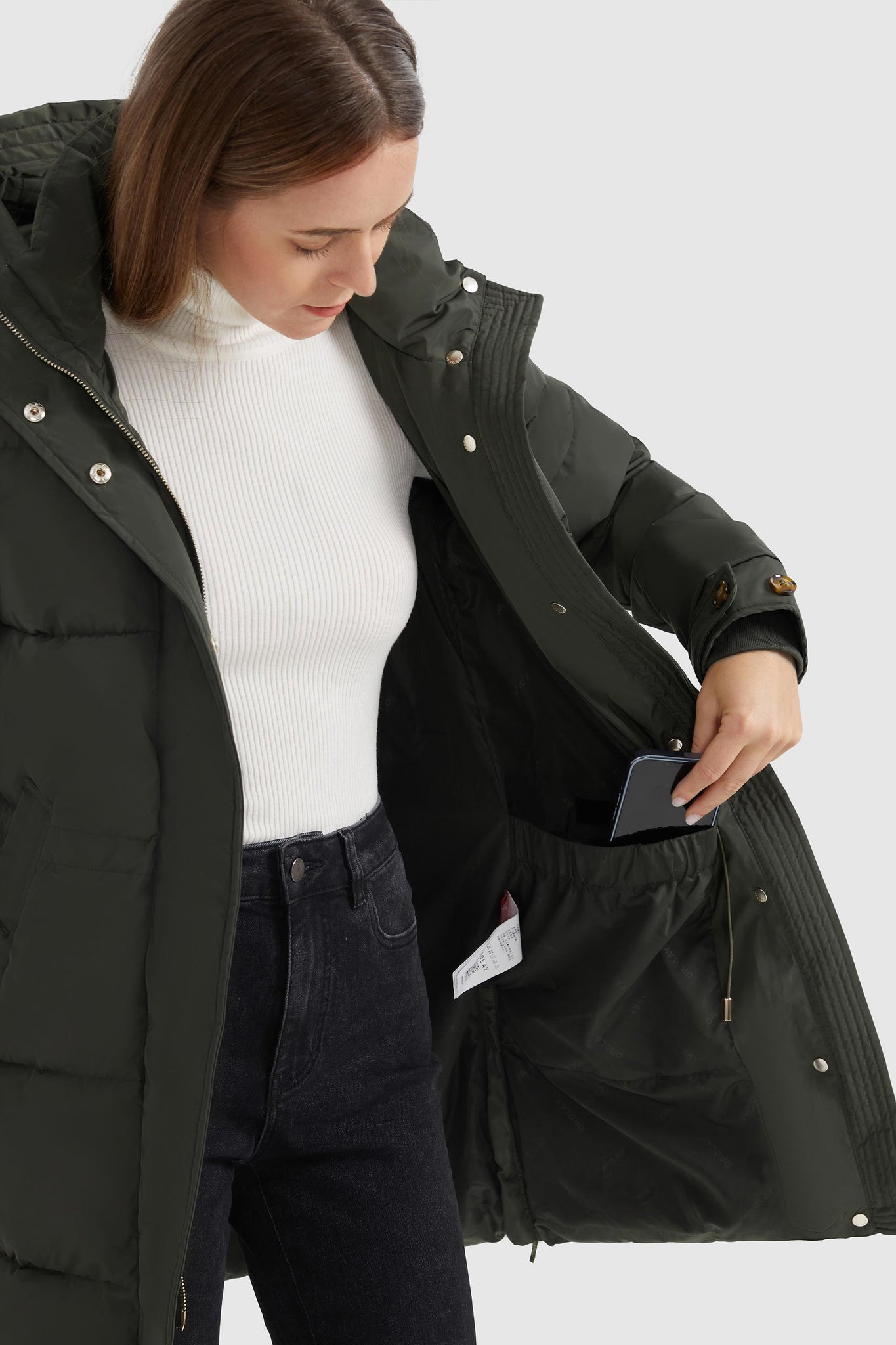 This Orolay winter jacket is crafted from water and wind-resistant 100% polyester fabric and uses renewable eco-friendly fabric to implement the concept of environmental protection, soft to the touch, fluffy with high resilience, excellent strength, and warmth, and the casual version is not bulky. It is a good choice for your cold and warm clothing in autumn and winter.